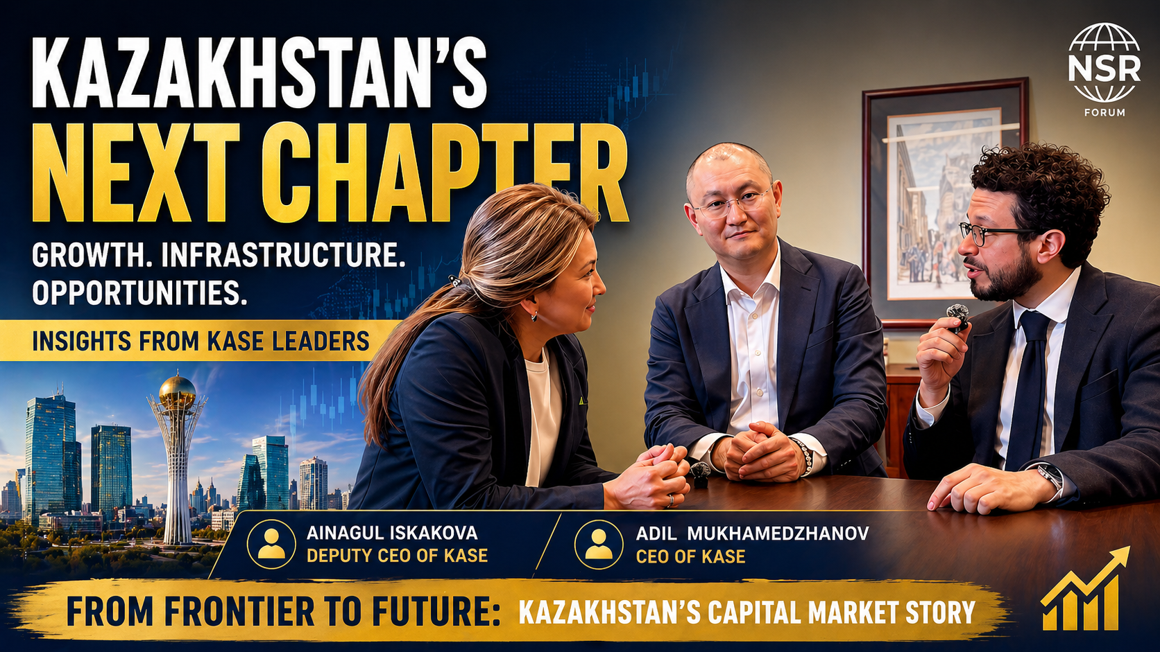 Senior leaders from the Kazakhstan Stock Exchange, including CEO Adil Mukhamedzhanov and Deputy CEO Anara Akhmetzhanova, share insights on the transformation of Kazakhstan’s capital markets—from infrastructure upgrades to growing global investor access.